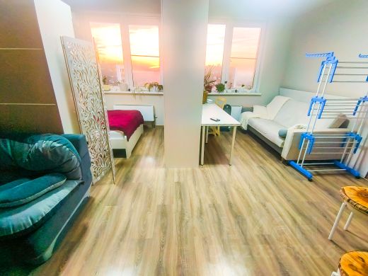 Внутри все продумано для комфортной жизни: удобная планировка с изолированной спальней и просторной кухней, квартира полностью укомплектована необходимой мебелью и техникой, можно сразу заезжать. Окна выходят во двор, поэтому здесь всегда спокойно, плюс есть балкон, что помогает решить вопрос с хранением.