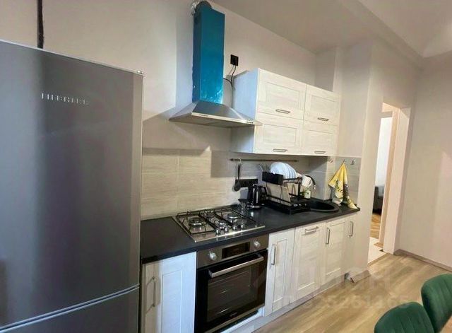 На кухне полный комплект посуды для сервировки и приготовления пищи; чай, кофе, сахар; бытовая техника: холодильник, чайник, микроволновка, плита, духовка, посудомойка, телевизор.