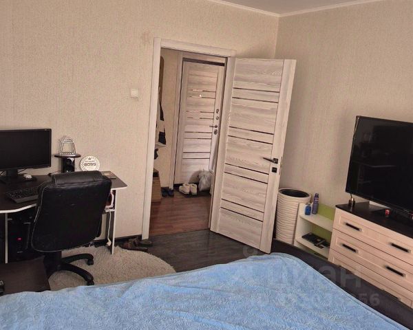 В спальне - двуспальная кровать, детская кроватка, шкаф-стенка, рабочий стол, книжные шкафы и полки. В другой комнате, которая была детской - две двухуровневых кровати, с рабочими столами на первой этаже и спальным местом на втором. Шкаф-стенка, комоды, книжные шкафы, полки, кондиционер.