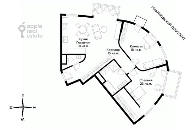 Квартира обставлена дорогой дизайнерской мебелью и есть все, включая лампы и элементы декора от Philippe Starck, люстра ручной работы из ракушек (Филиппины), ЖК ТВ Samsung, роутер ASUS, приставку AppleTV, холодильник, стиральная машина Samsung, шкафы, столики и книжные полки, рабочий стол, люстра и журнальный стол от IKEA, предметы искусства в дорогих багетах. В большой комнате стоит дорогой диван-кровать размера King.