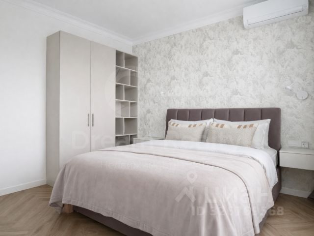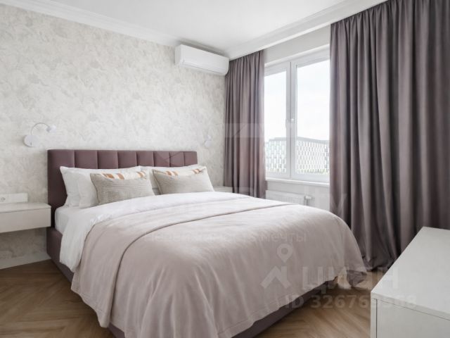 Планировка квартиры: кухня-гостиная с панорамным окном в пол, спальня, гардеробная, санузел с ванной и душем, санузел-прачечная, просторный холл. Квартира полностью готова для проживания, оснащена мебелью и встроенной бытовой техникой: варочная поверхность, духовка, микроволновая печь, посудомоечная машина, вытяжка, холодильник, стиральная машина. Окна выходят на бизнес-центр ComCity.