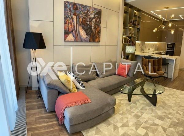 Квартира оснащена видеодомофоном с режимом улица-площадка у двери. Интернетом. Кондиционерами. Системой охраны Росгвардии. Кухня со встроенной техникой (угольная вытяжка, холодильник с морозильной камерой с выходом в интернет, посудомоечная машинка). Плита газовая, духовой шкаф электрический. Кухонный стол со стульями. Стиральная машинка с сушкой. Электрический резервный бойлер горячей воды на период летних плановых отключений. Мокрые помещения оснащены системой блокировки подачи воды при протечках.