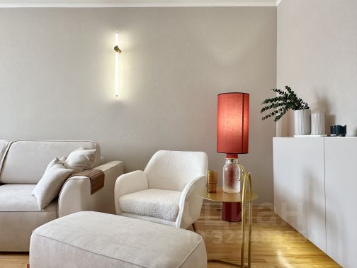 В большой комнате длинный комод, вместительный подвесной модуль с нижней подсветкой, НЕ раскладной диван, кресло, банкетка, стеклянный журнальный столик, золотой столик, телевизор, спутниковое телевидение 200 каналов и интернет ОКАДО 50 МБит/с.