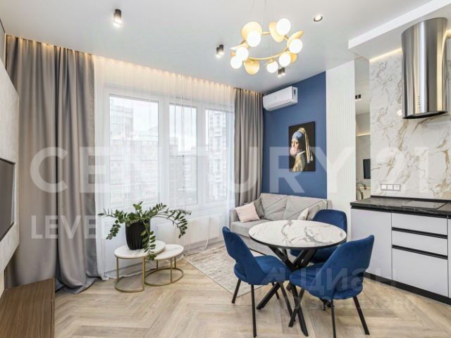 Вас будут окружать лоск и только качественные материалы: паркетная доска, керамогранит, мраморные подоконники, столешница кухни и острова из кварцита, высокие двери из массива дуба. Шикарный обеденный стол, рабочий стол и полки на балконе из массива дуба с живым краем.
