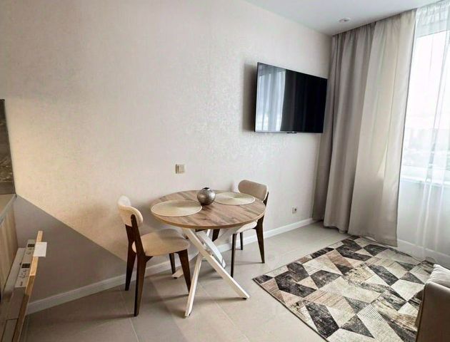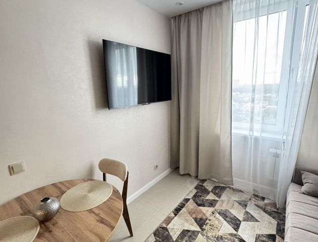 В квартире сделан качественный евроремонт из экологичных материалов. Все в квартире сделано для комфортной и приятной жизни, с большой любовью (собственник делал все для себя). Просторная жилая зона площадью 20 кв. м и кухня 9 кв. м обеспечивают комфортное проживание. В наличии вся необходимая мебель как в комнате, так и на кухне. Квартира полностью укомплектована техникой и всем необходимым для жизни: кондиционер, водонагреватель, холодильник, посудомоечная машина, телевизор и стиральная машина, шкаф, мини-гардеробная, посуда, пылесос, утюг. В квартире сделана шумоизоляция и теплые полы. Санузел совмещенный, оборудован ванной. Балкон утеплен. Окна выходят во двор, что обеспечивает тишину и уют.