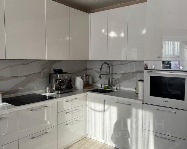 В зоне кухни: индукционная варочная панель, электрическая духовка, ПММ, вытяжка, холодильник. Смеситель с опцией подключения фильтра. Раскладной стол с приятными стульчиками. Много полок и ящиков для хранения.