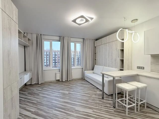 Сдаётся уютная квартира-студия в ЖК Сердце Одинцово. Квартира очень светлая, уютная! Высокий 23 этаж. Из окон открывается красивый вид на город и на Подушкинский лес. В квартире сделан хороший СВЕЖИЙ ремонт, после которого никто не жил!! Планировка: кухня-гостиная, совмещенный санузел, прихожая. Имеется вся необходимая мебель и бытовая техника. В квартире много мест для хранения вещей, в прихожей большой шкаф. В гостиной также большой вместительный шкаф. Установлена модульная система диван + кровать ( кровать раскладывается). Установлен кондиционер. Развитая инфраструктура района. В доме 3 магазина ( Пятёрочка, Ароматный мир, Винлаб), салон красоты . Рядом с домом в 7 минутах пешком станция наземного метро МЦД Одинцово и ж/д станция Одинцово. До Белорусского вокзала время в пути 27 минут. Удобная транспортная доступность. В 3х минутах от дома остановка общественного транспорта. Автобус идёт в Москву до Поклонной горы и до Киевского вокзала. До Москвы 10 минут езды. В 5-ти минутах от дома торговые центры, магазины, аптеки, рестораны, кафе, кинотеатр, салоны красоты, бар-ресторан Руки Верх, вкусно и точка, парк Ларисы Лазутиной и многое другое. Квартира свободна и готова к заселению! Показы по договоренности!
