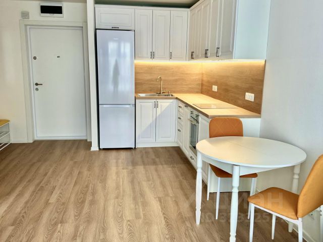 В кухне-гостиной, в зоне приготовления еды - встроенный кухонный гарнитур со всей необходимой встроенной бытовой техникой от ведущих мировых производителей Gorenje: варочная стеклокерамическая панель, духовой шкаф 60 см, 2х камерный холодильник, вытяжка, посудомоечная машина Electrolux 60 см, микроволновая печь, чайник Tefal. Установлена подсветка рабочей поверхности. Установлен фильтр питьевой воды - очистка с обратным осмосом Atoll.