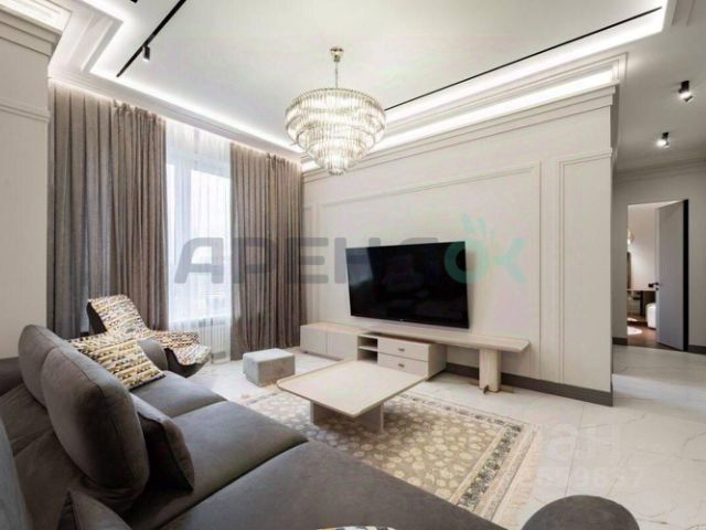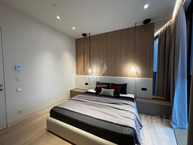 Функциональные апартаменты с современной отделкой, панорамным остеклением, полностью укомплектованы бытовой техникой, мебель под клиента. Планировка: гостиная с кухней, спальня с встроенными гардеробными шкафами, ванная с сантехникой, холл с гардеробными. В ночное время огни небоскребов никого не оставят равнодушными.