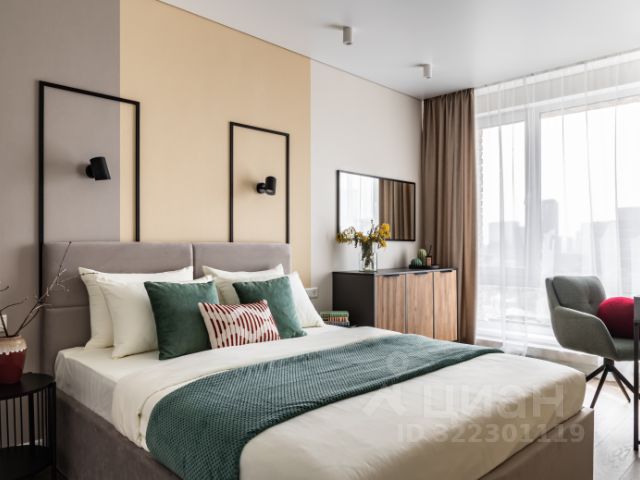 Сдается элегантная квартира-студия, расположенная в современном жилом комплексе. Из панорамных окон открывается вид на Москва-Сити. О квартире: Пространство грамотно зонировано и включает в себя кухню, гостиную-спальню и рабочую зону. Интерьер выполнен по авторскому дизайн-проекту. Квартира оснащена всей необходимой мебелью, включая раскладной диван с полноценным двуспальным местом и ортопедическим матрасом, а также вместительной гардеробной комнатой. Кухня укомплектована встроенной бытовой техникой ведущих европейских брендов (Bosch, AEG, Siemens). О жилом комплексе: В здании работает круглосуточная консьерж-служба. Внутренний двор благоустроен, на его территории находятся спортивные площадки, мини-гольф, два фонтана и прорезиненная беговая дорожка. Расположение: Отличная транспортная доступность: 3 минуты до метро, удобный выезд на ключевые магистрали города (ТТК, МКАД). В шаговой доступности расположены крупные ТРЦ Авиапарк и Хорошо, фитнес-центры и рестораны. Условия: -Аренда от собственника на длительный срок. -Квартира оптимальна для проживания одного человека. -Без животных. -Просьба агентам и риелторам не беспокоить. Аренда квартиры рядом с метро Хорошевская недорого без комиссии (с фото).