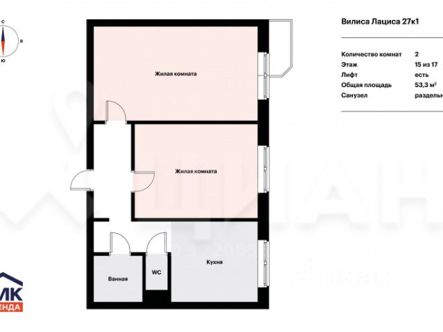 От года, комм. платежи включены (без счётчиков), без комиссии, залог 70 000 ₽