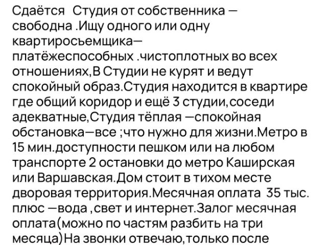 Предлагаем в аренду уютную трехкомнатную квартиру на Пролетарском проспекте, дом 21к2. Общая площадь квартиры составляет 77 кв. м, из них 44 кв. м — жилая. Квартира расположена на 16 этаже 22-этажного панельного дома. Высокие потолки (2,65 м) и удобная планировка создают простор и комфорт. В доме есть два пассажирских и один грузовой лифт, а также пандус и мусоропровод, что делает его удобным для всех жильцов. Квартира с качественным евроремонтом. В ней есть всё необходимое для комфортного проживания: современная мебель на кухне и в комнатах, а также вся необходимая техника — холодильник, посудомоечная, стиральная и сушильная машины. Просторная кухня площадью 10,1 кв. м. В квартире два санузла — один совмещенный и один отдельный, что особенно удобно для семьи. Окна квартиры выходят как во двор, так и на улицу. Есть один балкон, который удобно использовать для хранения вещей. Дом находится в районе с развитой инфраструктурой. В шаговой доступности расположены школы, детские сады, клиники и магазины. До станции метро "Кантемировская" всего 6 минут пешком, что удобно для тех, кто часто пользуется общественным транспортом. Также рядом находятся зеленые зоны для прогулок и отдыха. Шикарные види из окна на новый парк! Аренда от собственника, без комиссии. Долгосрочная аренда. Залог и предоплата обсуждаются индивидуально. Квартира идеально подойдет для семьи с 2-4 детьми. Без животных и не курящих! Просмотр 11.02-13.02