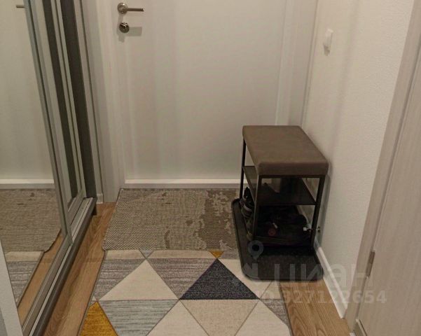 В коридоре вешалка и тумба для обуви.