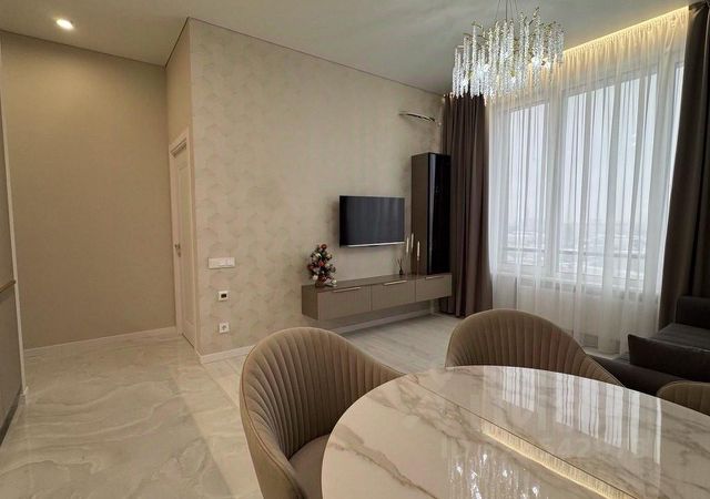 Квартира полностью оборудована и готова к заселению, показ по договорённости. Сдаю на долгий срок. Риелторов прошу не беспокоить. Если вы видите объявление значит оно актуально. Рассматриваются только некурящие арендаторы. БЕЗ ЖИВОТНЫХ. ПЛАНИРОВКА: Кухня-гостиная (28 кв.м.), Две изолированных комнаты (17 кв.м., 15 кв.м.), Ванная комната с санузлом (5 кв.м.), Душевая комната с санузлом (4 кв.м.), Прихожая ( 5.2 кв.м.), Гардеробная (2.6 кв.м), Кладовая (2.3 кв. м.). - Во всех комнатах установлен кондиционер. - Кухня-гостиная с современным кухонным гарнитуром (встроенная бытовая техника: духовой шкаф, СВЧ, варочная панель, посудомоечная машина, холодильник), стол, стулья, ТВ, диван. - Спальня с двуспальной кроватью, большой шкаф, ТВ. - Кабинет-гардеробная с огромным шкафом, рабочей зоной. - Просторный санузел с ванной. - Совмещенный санузел с душем, стиральная машина. - Много места для хранения одежды и обуви.