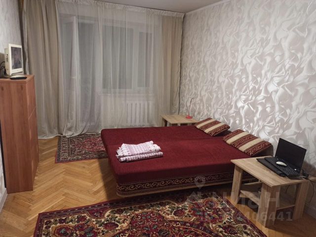 Комната: двуспальная кровать с ортопедическим матрацем средней жесткости, комод, вместительный шкаф-купе (2 м), комод, телевизор Samsung 43, на окнах ролл-шторы и дополнительно тюль и шторы блэкаут