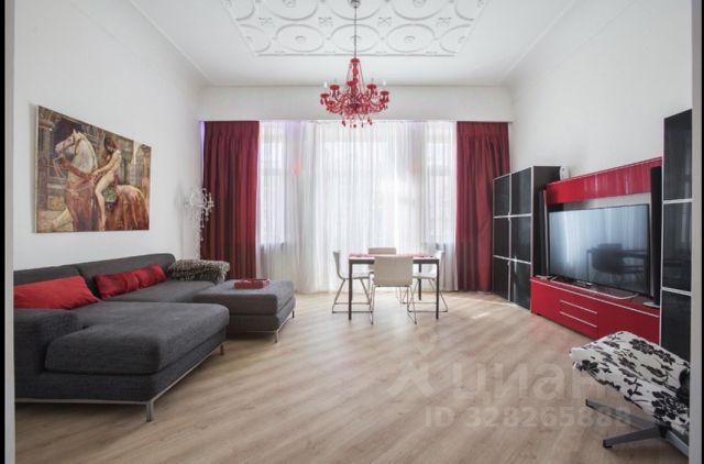 Квартира с тремя спальнями и гостиной в историческом центре Москвы, . Общая площадь — 71 кв. м, жилая — 46 кв. м, кухня — 9 кв. м. Квартира расположена на 3 этаже 6-этажного кирпичного дома, построенного в 1913 году. Потолки — 3,3 метра. В пешей доступности 6 станций метро. Комнаты просторные и светлые, планировка удобная. Санузел раздельный. Дом в хорошем состоянии, оборудован пассажирским лифтом. Район тихий и зеленый, несмотря на близость к центру города.