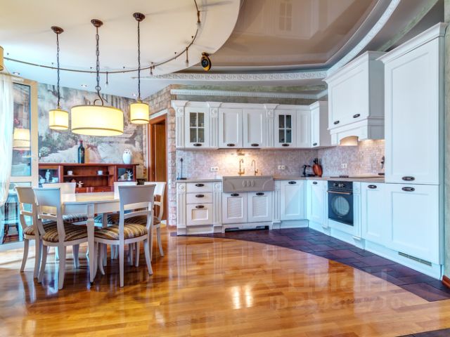- Акустическая и телевизионная система в гостиной, телевизоры в кухонной зоне и спальне)