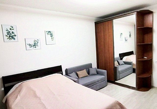 - большой удобный раскладной диван в комнате;