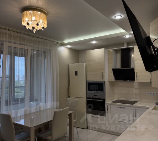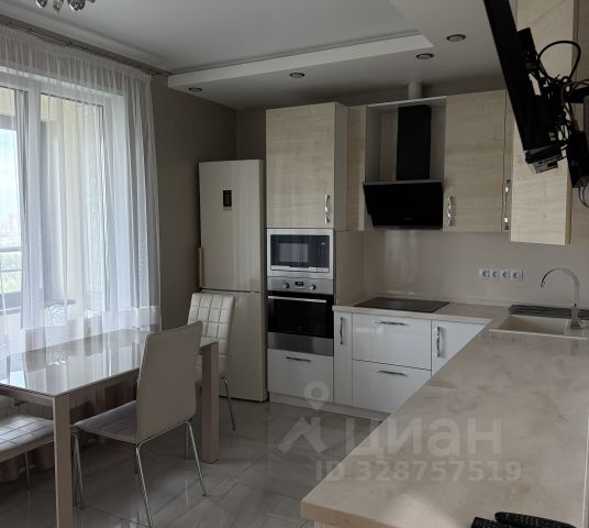 Кухня: Станет сердцем вашего дома. Она полностью укомплектована: два холодильника, электрическая плита с духовым шкафом, микроволновая печь. Большой обеденный стол (110/140 см) с легкостью разместит за ужином 6-8 человек. С кухни есть выход на лоджию с красивым видом на вечернюю подсветку города.
