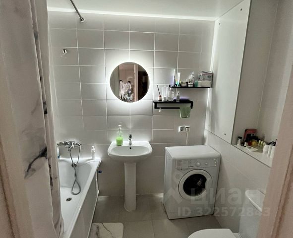 В санузле новая сантехника, стиральная машинка 2 в 1 с сушилкой.