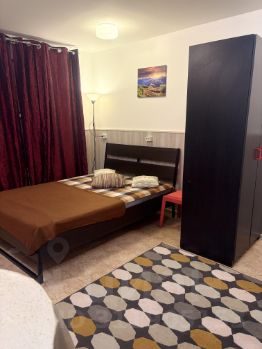 Спальня : диван-кровать Carina Nova от Аскона с ортопедическим матрасом и protect чехлом. Очень удобный как стационарная кровать, но, если необходимо дополнительное свободное место, можно легко сложить. Вместительный четырехстворчатый шкаф с антресолями, шторы блэкаут уровень 100%, зеркало с тремя режимами подсветки, прикроватные тумбочки.