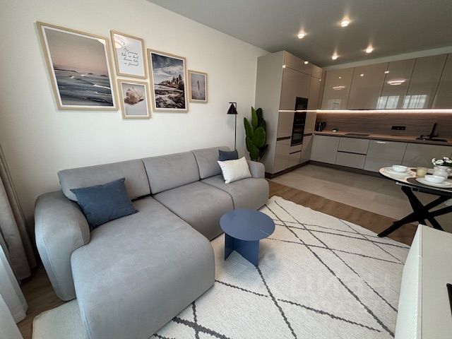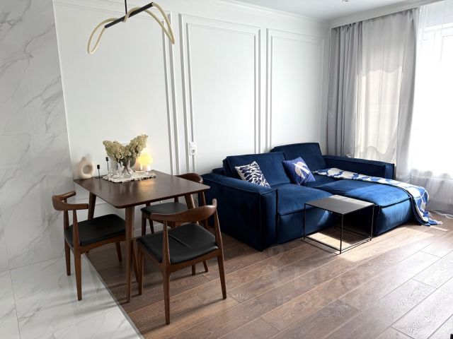 В квартире 2 комнаты: уютная спальня с выходом во вместительную гардеробную с окном и кухня-гостиная.