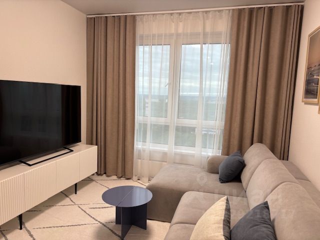В гостиной большой и удобный раскладной диван, который можно сделать угловым и уютное кресло. Телевизор LG с голосовым управлением Алисой.