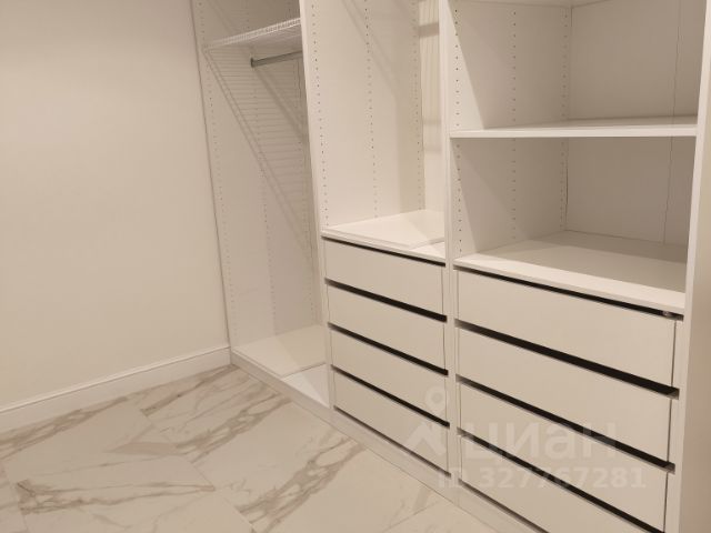 Также в квартире имеется большая гардеробная полностью оборудованная под хранение вещей. В комнате имеется большой функциональный шкаф. Есть гладильная доска.
