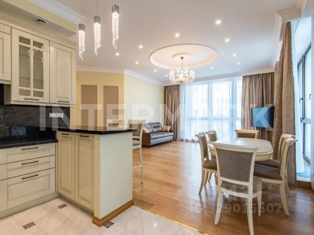 Просторная квартира площадью 208 кв.м. расположена на 4-м этаже элитного дома с потолками высотой 3,2 м. Функциональная планировка включает просторную кухню, совмещённую с гостиной, 3 уютные спальни, 3 ванные комнаты, оборудованные современной сантехникой, и вместительные гардеробные для организованного хранения вещей. Окна выходят на две стороны — на благоустроенный внутренний двор и тихий переулок; в квартире также предусмотрен балкон — уголок для утреннего кофе с видом на город.