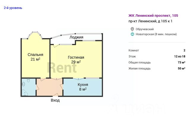 до м. Воронцовская 13 минут пешим шагом