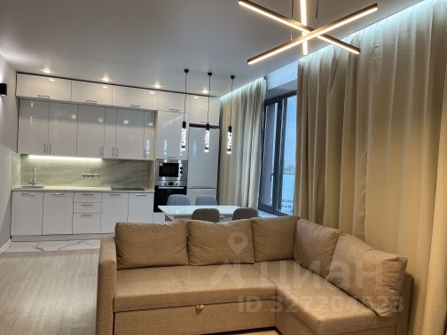Напрямую от собственника, 28 этаж, евро-3 (евро-трёшка: кухня-гостиная + 2 комнаты), при этом 1 комната только с диваном и тумбой, 2 санузла. БЕЗ домашних животных. Коммунальные расходы по счетчикам (вода, водоотведение, свет, интернет, сигнализация) НЕ включены в ежемесячную оплату. Вся техника и мебель в квартире НОВЫЕ, дом заселён 3 года назад, квартиры все уже с ремонтами - шума ремонтов нет. В квартире 2 кондиционера: в кухне-гостиной и в спальне у ванны (см. планировку на фото). В коридоре шкаф-купе; в ванной - стиральная машинка Samsung; кухня - техника Krona, гарнитуры с механизмами Blum, микроволновка LG, светодиодная подсветка, кожаный диван; в квартире - сигнализация и интернет. Всё остается в том же виде, что и на фотографиях, готова к заселению с 20-х чисел февраля.