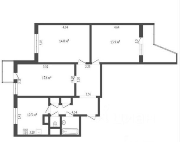 От года, комм. платежи включены (счётчики включены), без комиссии, залог 110 000 ₽