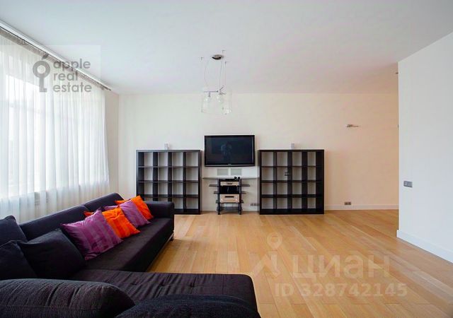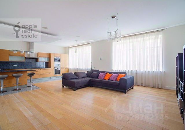 Лот: 21378. Вашему вниманию предлагается превосходная четырёхкомнатная квартира после капитального ремонта в престижном районе города. ЖК "Новопесковский" находится в тихом переулке под круглосуточной охраной. Имеется подземный паркинг и гостевая парковка на огороженной территории. Функциональная планировка разделена на приватную зону и зону для гостей. Приватная зона состоит из двух спален, в одной из которой есть гардеробная комната, во второй - вместительный шкаф, свой полноценный санузел с ванной и душевой. Гостиная зона состоит из просторной прихожей со встроенной системой хранения, кухни-гостиной студийного плана с панорамным окном в столовой зоне, гостевой спальни со своей гардеробной комнатой и санузла с душевой. Ремонт выполнен в светлых тонах из современных, качественных материалов. Установлены системы кондиционирования и аква-стоп, а так же теплые полы. Квартира оснащена всей необходимой бытовой техникой и мебелью. В шаговой доступности расположены модные кафе и рестораны города, продуктовые магазины и станция метро Смоленская. Сдается квартира в переулке 1-й Смоленский в Москве.