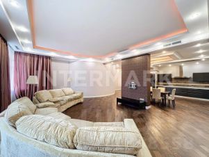 ID 25146. Просторная 4-комнатная квартира в ЖК Дом на Смоленской набережной в М. Новопесковском пер., 8, 2006 г. постройки. Естественное освещение (большие окна и высокие потолки 3.20), грамотное зонирование (отдельно общая и спальная зоны), круглосуточная охрана. Квартира меблирована, оснащена бытовой техникой, в гостиной и спальне установлен ТВ. В доме проведена приточно-вытяжная вентиляция, имеется система подогрева пола, беспроводной интернет. Общая площадь 210 квм., гостиная, зона кухни и столовой, три спальни, две ванные комнаты (ванна, душ), гостевой туалет, 3 гардеробные, хозблок, прихожая. Окна выходят в Проточный пер., видна набережная Москвы-реки. Планировка линейная. В доме 24/7 охрана, служба эксплуатации. Предусмотрена гостевая парковка (уровень стилобата), м/м в подземной гараже жильцы арендуют самостоятельно В шаговой доступности государственные и частные школы, кружки, спортклубы, супермаркеты, торговые центры и культурная жизнь р-на Арбата и Хамовников. В 2-х шагах метро Смоленская (Филевская и Арбатско-Покровская линии). Можно с детьми и домашними питомцами (питомцы обсуждается дополнительно). Сдается квартира в районе Арбат в Москве.