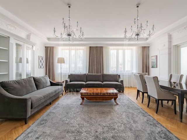 ID 42254. Просторная 4-комнатная квартира в элитном доме на Леонтьевском переулке. Только закончен дизайнерский ремонт, использованы натуральные итальянские материалы, напольная плитка Roberto Cavalli, приточная система вентиляции Hitachi с очисткой воздуха и кондиционированием, паркет из американского дуба. Квартира обставлена современной мебелью от Nino Galimberti и всей необходимой бытовой техникой от компании Miele. Три гардеробные комнаты декорированы деревом из американского ореха. Проведен оптико-волоконный интернет и Wi-Fi, покрывающий всю квартиру отличным сигналом. Планировка: большая гостиная, современная кухня, 3 спальни, просторная гардеробная, 3 ванные комнаты, постирочная. Окна выходят на обе стороны: в тихий двор и тихую улицу. Одно машино-место в подземном паркинге входит в стоимость, круглосуточная охрана. Квартира застрахована. Квартира готова к заселению, после ремонта в ней никто не жил. Please feel free to contact Intermark Real Estate to get detailed information or to set up a viewing! 24/7 help desk service with English-speaking operators В квартире: С мебелью, М/место в подземном паркинге, Парковка, Посудомоечная машина, Стиральная машина, Сушильная машина, Бойлер, Душевая кабина, Спутниковое/кабельное телевидение, Видеонаблюдение, Охрана, Интернет, Балкон, Можно с детьми, Изолированная кухня, Интерьер в современном стиле, Кондиционер, Гардеробная комната, Лифт, Ремонт - дизайнерский, Кухонная мебель, Окна на улицу, Окна во двор Сдается квартира в переулке Леонтьевский в Москве.