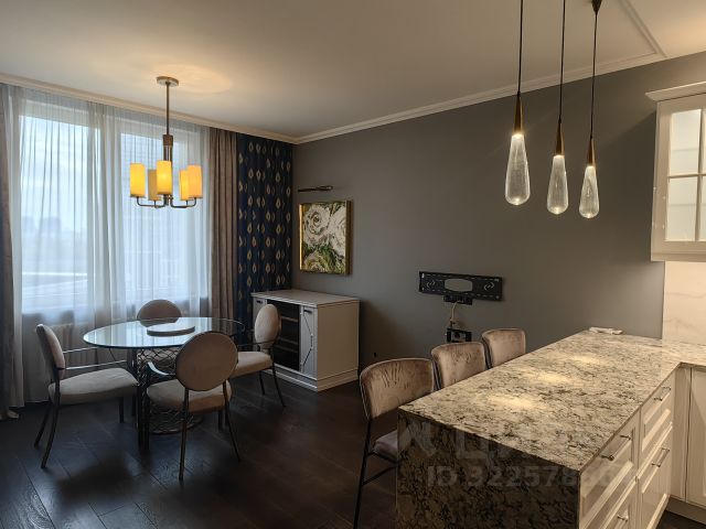 ID 41958: Роскошная 4-комнатная квартира в жилом комплексе премиум класса "Дом на Мосфильмовской". Квартира на 36 этаже с готовой отделкой и мебелью по дизайн-проекту студии Art Team. Функциональная планировка включает в себя столовую-гостиную с угловым панорамным остеклением, две спальные комнаты, комнату свободного назначения (можно оборудовать в кабинет, спальню или детскую), две ванные комнаты, постирочную, а также просторный холл с системой скрытого хранения. В комнатах мебель из США и Великобритании от таких производителей, как Henredon, Bakker, Hooker, Tetrad (Fabian Smith).Итальянская кухня Brummel Cucine, премиальная техника Kuppersbusch. Гарнитур выполнен из палисандра, столешница и фартук — из красивейшего высокопрочного бразильского гранита, в главной спальне люстра из венецианского стекла. Межкомнатные двери выполнены из массива африканской породы красного дерева Анегри. Угловое панорамное остекление высотой более 3 метров позволяет любоваться видами МГУ, Москвы-реки и Лужников. Удобный выезд в центр и ТТК. Одно машино-место в подземном паркинге включено в стоимость. Please feel free to contact Intermark Real Estate to get detailed information or to set up a viewing! 24/7 help desk service with English-speaking operators В квартире: М/место в подземном паркинге, Посудомоечная машина, Стиральная машина, Сушильная машина, Кондиционер, Интернет, Видовая квартира, Можно с детьми, Можно с животными, Вид на реку, Интерьер в современном стиле, Консьерж, Гардеробная комната, Ремонт - дизайнерский, Окна на улицу, Окна во двор Сдаю жильё на улице Мосфильмовская в Москве на длительный срок.