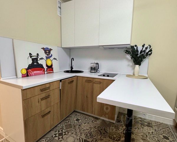 Общая площадь 23,6 кв. м. (включая лоджию). Уютная кухонная зона. Квартира полностью обустроена и меблирована для комфортной жизни. Светлая комната, с уютной обстановкой и новой мебелью. Кухонная зона оснащена всем необходимым, с встроенной техникой (посудомоечная машина, духовой шкаф, встроенный холодильник, электрическая плита, чайник, электрический полотенцесушитель, кондиционер, стиральная машина, телевизор). В квартире - вся техника и мебель новые, никто не пользовался. Застекленная лоджия. Металлическая дверь. Стеклопакеты. Напольное покрытие: плитка, ламинат.