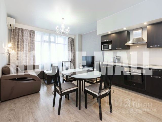 Сдается уютная студия в новом современном жилом комплексе ТРИКОЛОР. Огороженная территория, охрана, системы доступа. Необходимая инфраструктура на территории: спортивная и детская площадки, подземный паркинг (отдельная плата), магазины, салоны красоты, детский сад, фитнес клуб World Class. В пешей доступности парки и скверы, а также крупный ТЦ. Квартира укомплектована всей необходимой современной мебелью и бытовой техникой.