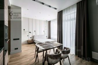 Спланирована кухня-гостиная с обеденной зоной, мастер-спальня с гардеробной и ванной комнатой, гостевой санузел, прихожая. Апартаменты полностью меблированы и оборудованы бытовой техникой. Предусмотрено машино-место в подземном паркинге.
