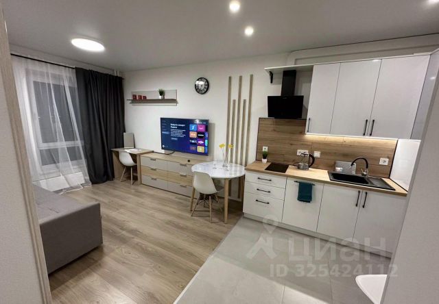 - Дизайнерская мебель: двухспальная кровать с ортопедическим матрасом, 2 тумбы, трехстворчатый шкаф, подвесные консоли под ТВ, кухонный гарнитур под заказ с пеналами и барной стойкой, стулья, диван-кровать Moon, журнальные столики, встроенный шкаф в прихожей, встроенная мебель в С/У, многоуровневое освещение и др.
