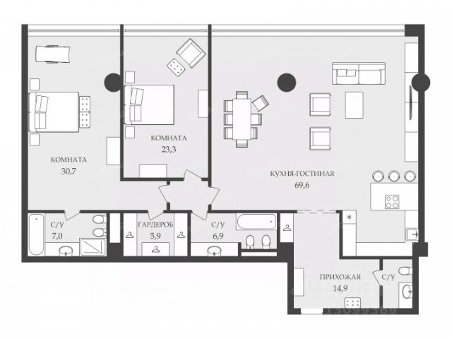 От года, комм. платежи включены (без счётчиков), без комиссии, залог 330 000 ₽