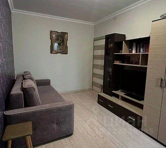 - в ГОСТИНОЙ установлен большой диван и навесной телевизор;