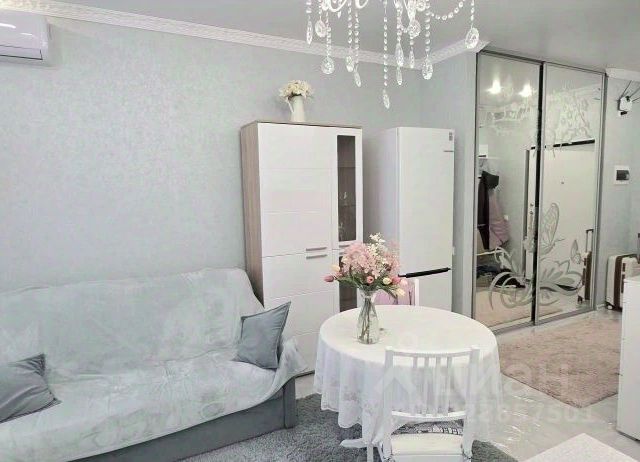 КВАРТИРА: 43м2, окна в пол, изолированная комната (кровать 180 с подьемным механизмом, рабочая зона, книжный шкаф, ниша под ТВ, большой вместительный платяной шкаф; кухня-гостиная (встроенная кухня Мария, со встроенной техникой: духовка, СВЧ, варочная поверхность, диван-кровать, ТВ-70 дюймов, ниша книжная полка, стол обеденный); гардеробная; санузел со стиральной машиной; кондиционер