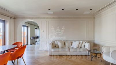 ID 17701. Просторная, светлая 5-комнатная квартира в реконструированном историческом доме на легендарной Пятницкой улице. Выполнен высококачественный евроремонт с использованием только натуральных материалов. Функциональная планировка: общая площадь 162 кв. м, гостиная, большая изолированная кухня-столовая, 4 спальни, 2 ванные комнаты и гостевой туалет, гардеробная, встроенные шкафы. Полная комплектация бытовой техникой и сантехникой престижных марок. Предлагается без мебели. Установлен бойлер, кондиционеры, стиральная и сушильная машины, проведен высокоскоростной интернет. Высокие потолки, окна выходят на 3 стороны, благодаря чему открываются изумительные панорамные виды. Нефиксированное машино-место на территории двора дома входит в стоимость. В шаговой доступности вся развитая инфраструктура города, множество кафе и ресторанов, великолепных памятников архитектуры, музеев и театров. Сдается на длительный срок. Можно с детьми. Можно с животными. Снять квартиру в районе Замоскворечье в Москве на длительный срок.