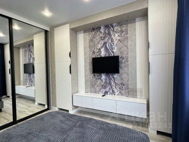 - В комнате размещена двуспальная кровать (160х200) с ортопедическим матрасом и белоснежным постельным бельем, двуспальный диван (140х190), ТВ 50 со Smаrt-ТV, большой шкаф-купе.