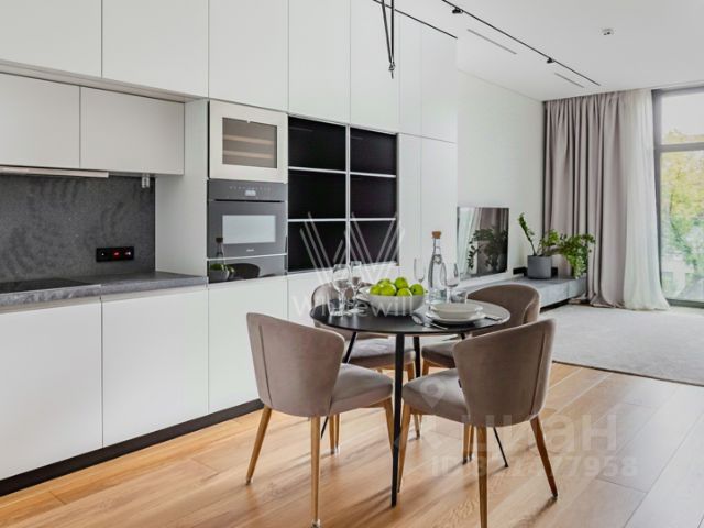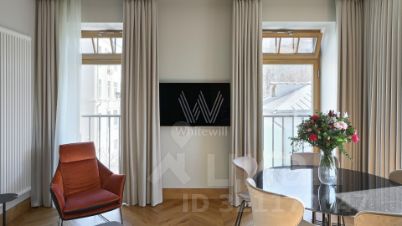 Главное об апартаментах: третий этаж, 65 метров, кухня-гостиная, спальня, два санузла, гардеробная. Кондиционер, техника Miele и Bosch. В стоимость входит одно парковочное место. Апартаменты подходят для одного или для пары.
