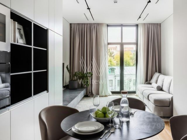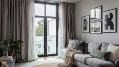 Минимализм здесь — не просто стиль, а философия жизни: отбросить лишнее и сфокусироваться на главном. Утро начинается с мягкого сияния, которое плавно заполняет пространство сквозь высокие окна. Лучи солнца скользят по тарелкам и чашкам, превращая простой завтрак в медитативный ритуал. Вечером квартира погружается в уютный полумрак. Здесь ощущается центр динамичной столицы, но без лишней суеты и визуальных помех.