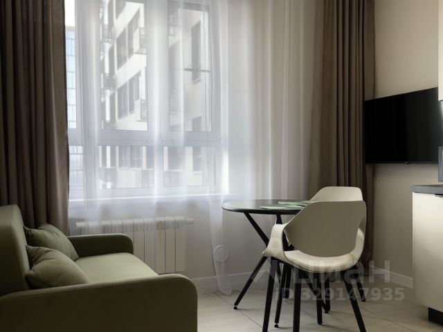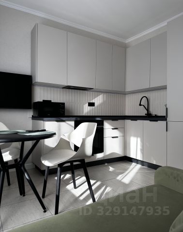Очень уютная студия - диван, стулья и кровать из приятного качественного велюра, продумано освещение с переключением светильников, постельное белье, пол из прочного кварцвинила, кухня качественная с фасадами soft-touch, высота спальной зоны второго яруса 130-140 см.