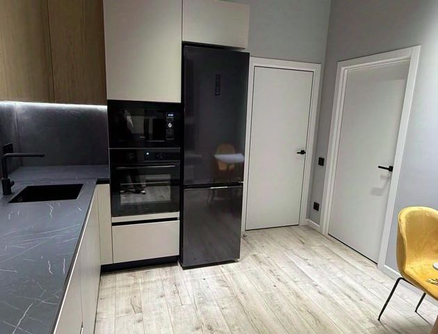 Стильная кухня-гостиная полностью оборудована для готовки и жизни. Стоит удобный раскладной диван, комод, удобно принимать гостей. Есть всё: посуда, кастрюли, сковорода, столовые приборы.