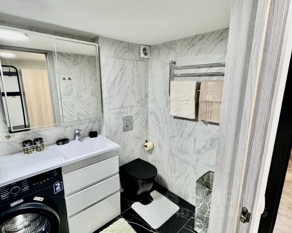 Сдам квартиру после капитального ремонта. Состояние: Идеальное. Всё новое, первая сдача. — Вся мебель и бытовая техника НОВАЯ (холодильник, стиральная машина, ТВ, электроплита). — Сантехника заменена полностью. — Установлена система очистки воды (осмос).